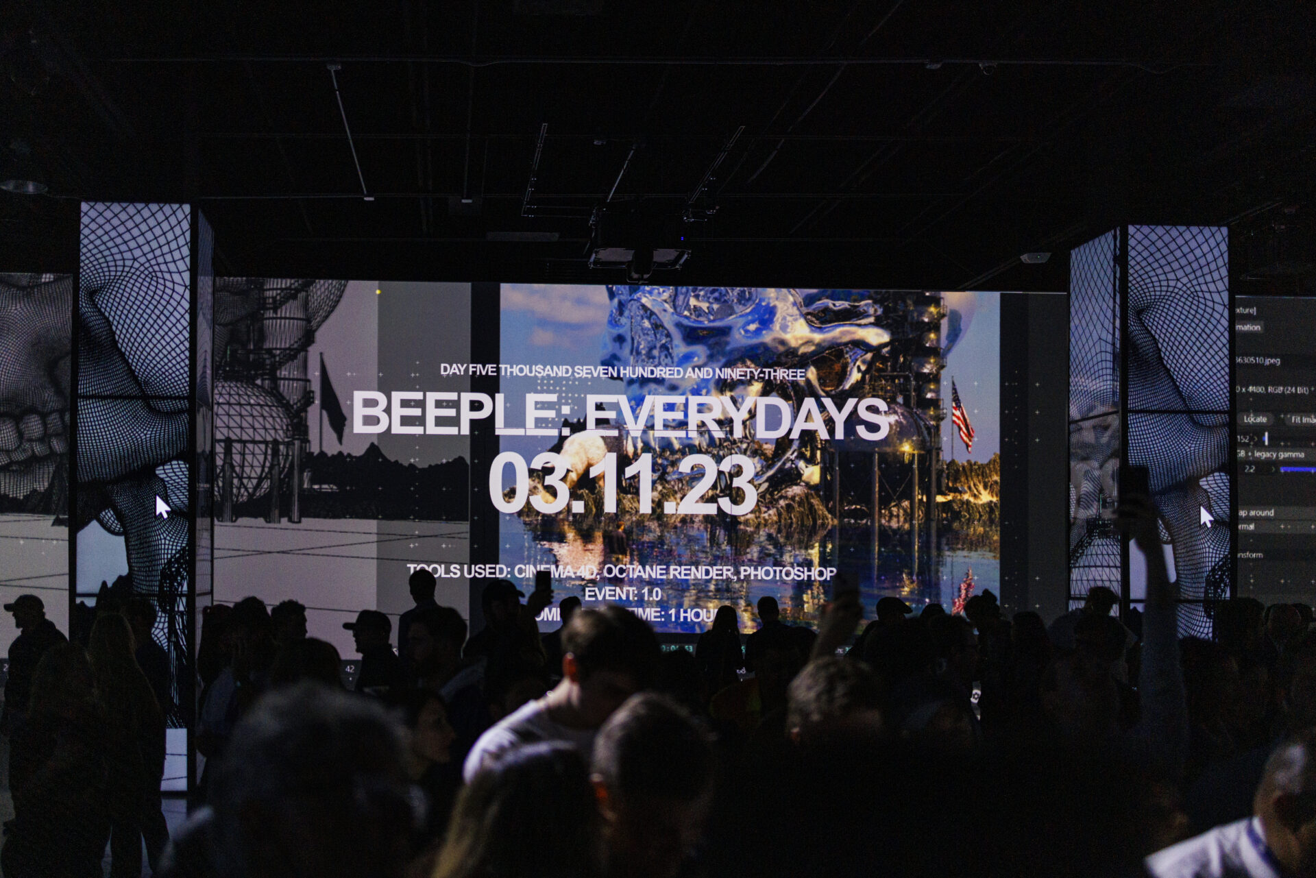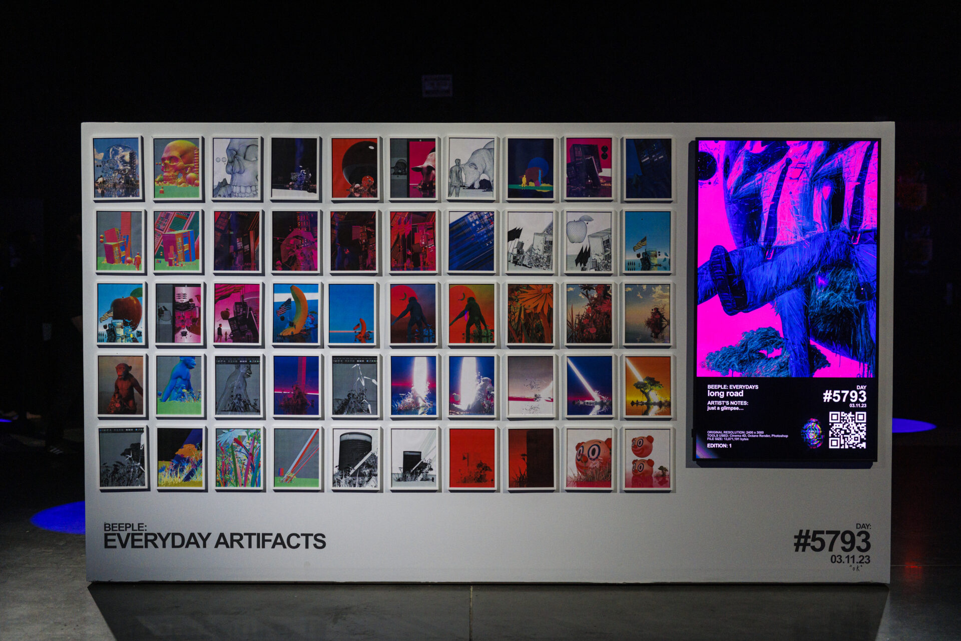 The studio showcased a sprawling 10,000 square foot gallery and an immersive 12,000 square foot Experiential Space, offering attendees a multifaceted experience. As the evening unfolded, guests were treated to a spectacular array of entertainment, including an artist showcase, mesmerizing live 3D visuals, appearances by celebrities, captivating kinetic sculptures, and a live performance of Beeple’s “Everyday” series. The event also featured the first-ever live Everyday print drop and exciting giveaways, making it an unforgettable celebration of Beeple’s artistic journey.